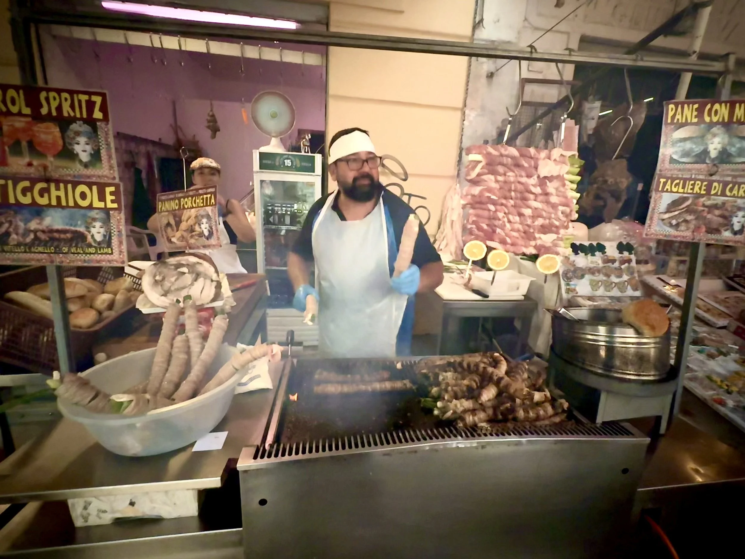 Mark was not letting another trip to Sicily go by without tasting the real street food of Palermo. Last time, our plans changed at the last minute, and Palermo got cut from the itinerary. This year, we were determined: arancini, stigghiola, tuna tartare, pane ca’ meusa, sfincione, and (of course) cannoli were all calling our names.