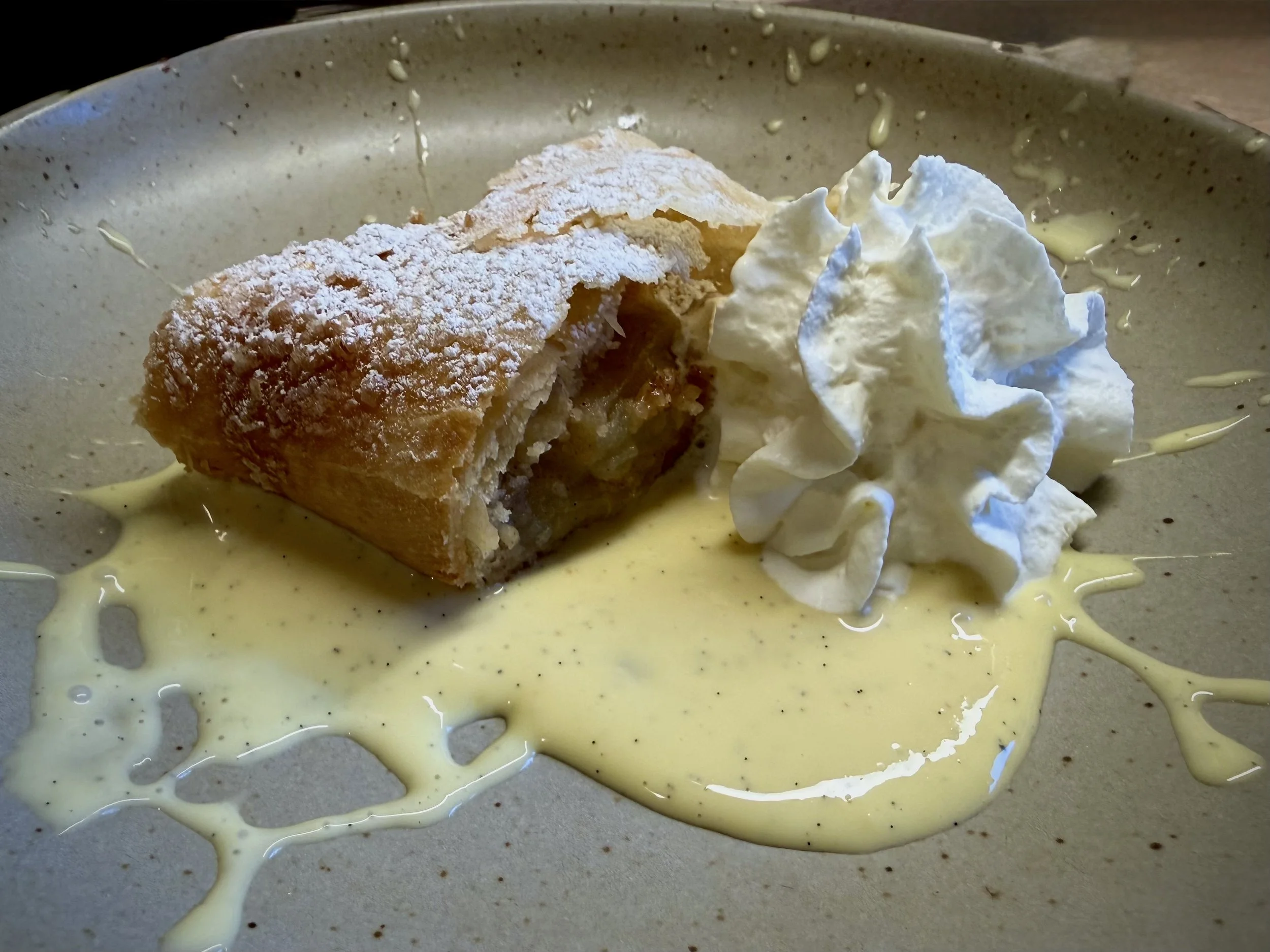 A simple apple strudel with custard sauce. Sometimes the simpler ways are the best.