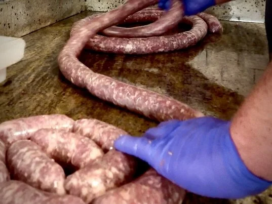 They’ll make a big batch, then pack it into bags of four links, Cryovac them, and freeze them. That way they can just pull out what they need—whether they’re eating the sausages whole or using the meat in another dish.