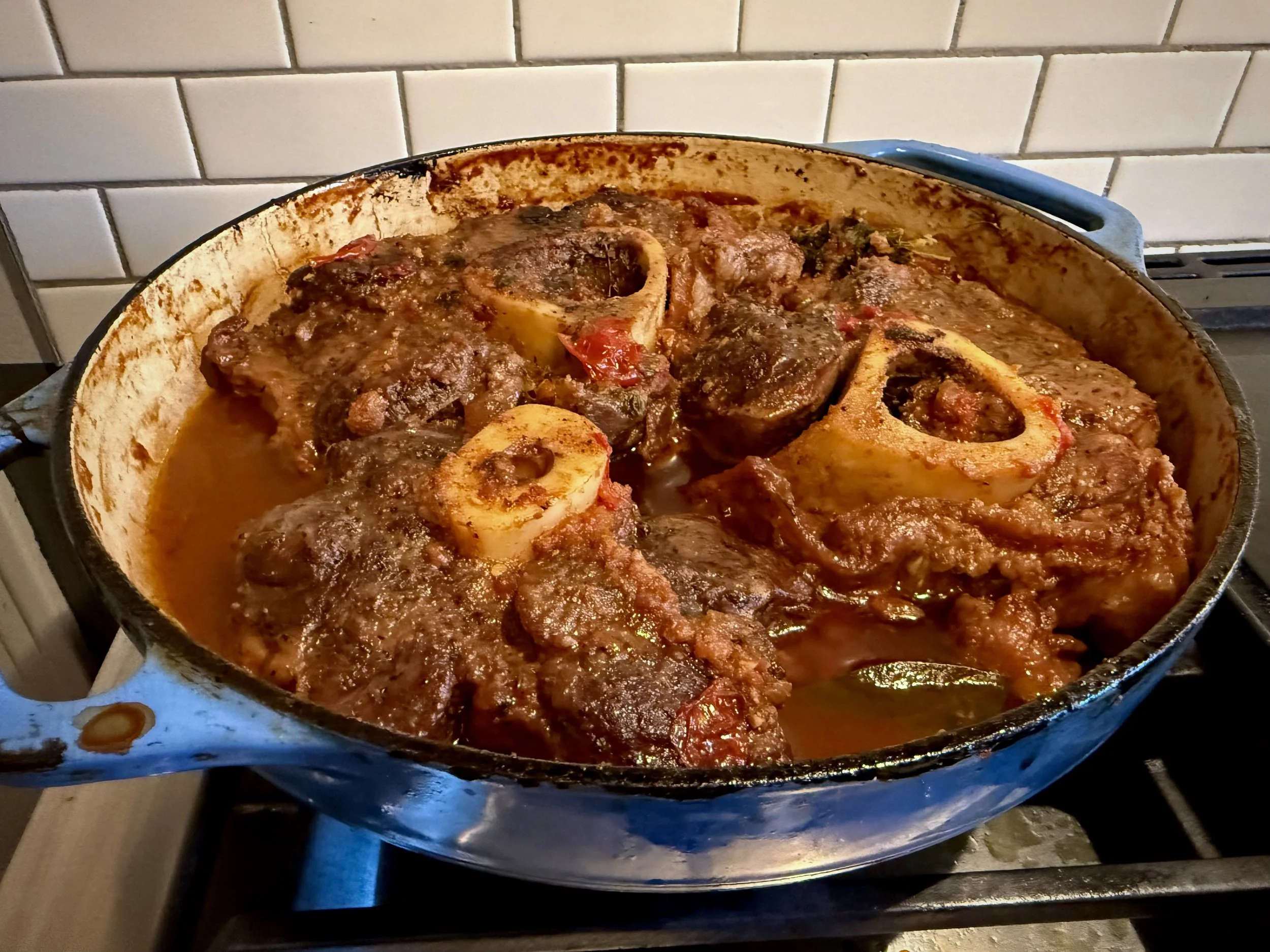 I start my Osso Buco on the stove, searing the shanks for a golden crust, then building the sauce with wine and tomatoes. Once everything’s bubbling, it all goes in the oven for a long, slow braise—until the meat is fall-off-the-bone tender and the marrow is ready to be savored. If I’m feeling nostalgic, I dream of braising it over a live fire, using low embers above and below the Dutch oven. That’s old-school, and the flavor is unbeatable.