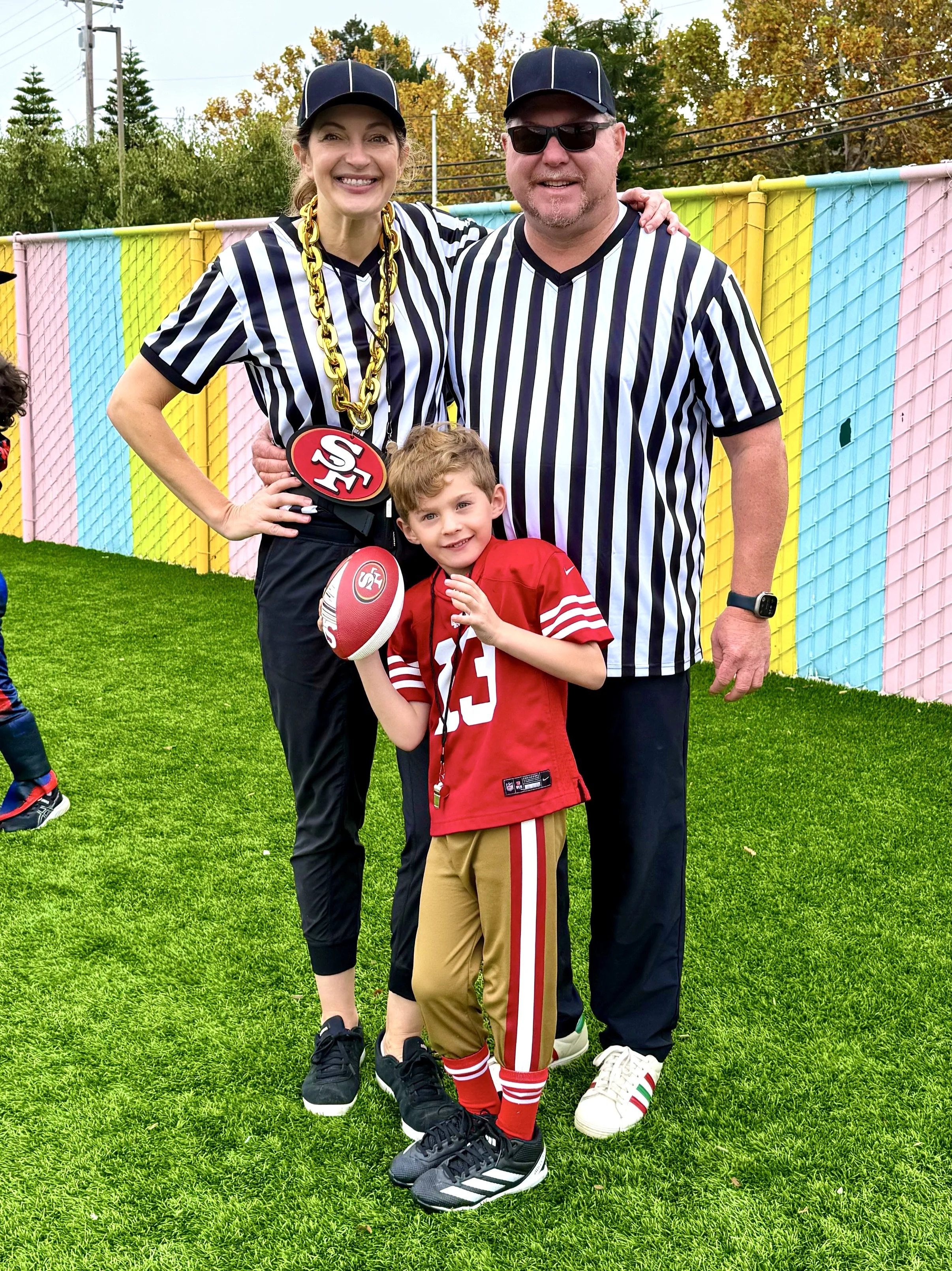 Mom and Dad are making sure that this Brock Purdy gets all the favorable calls at the school Halloween parade.